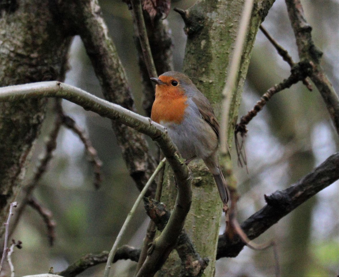 Did you know that the robin is one of the few birds that sing all year round? Only stopping for a short period in late summer when they are moulting. Their song changes throughout the seasons with the spring song starting as early as mid-December, reaching it’s full force in spring, the purpose being to defend its territory and to attract a mate. He’s one of the first birds to sing in the morning and the last to sing at night, which means I’m fortunate to hear him whatever time of day I choose to go on my daily walk.