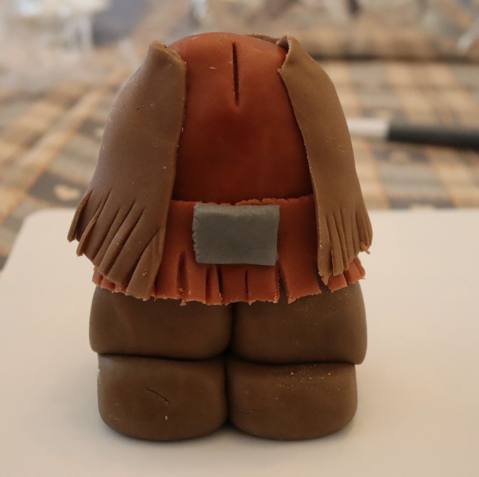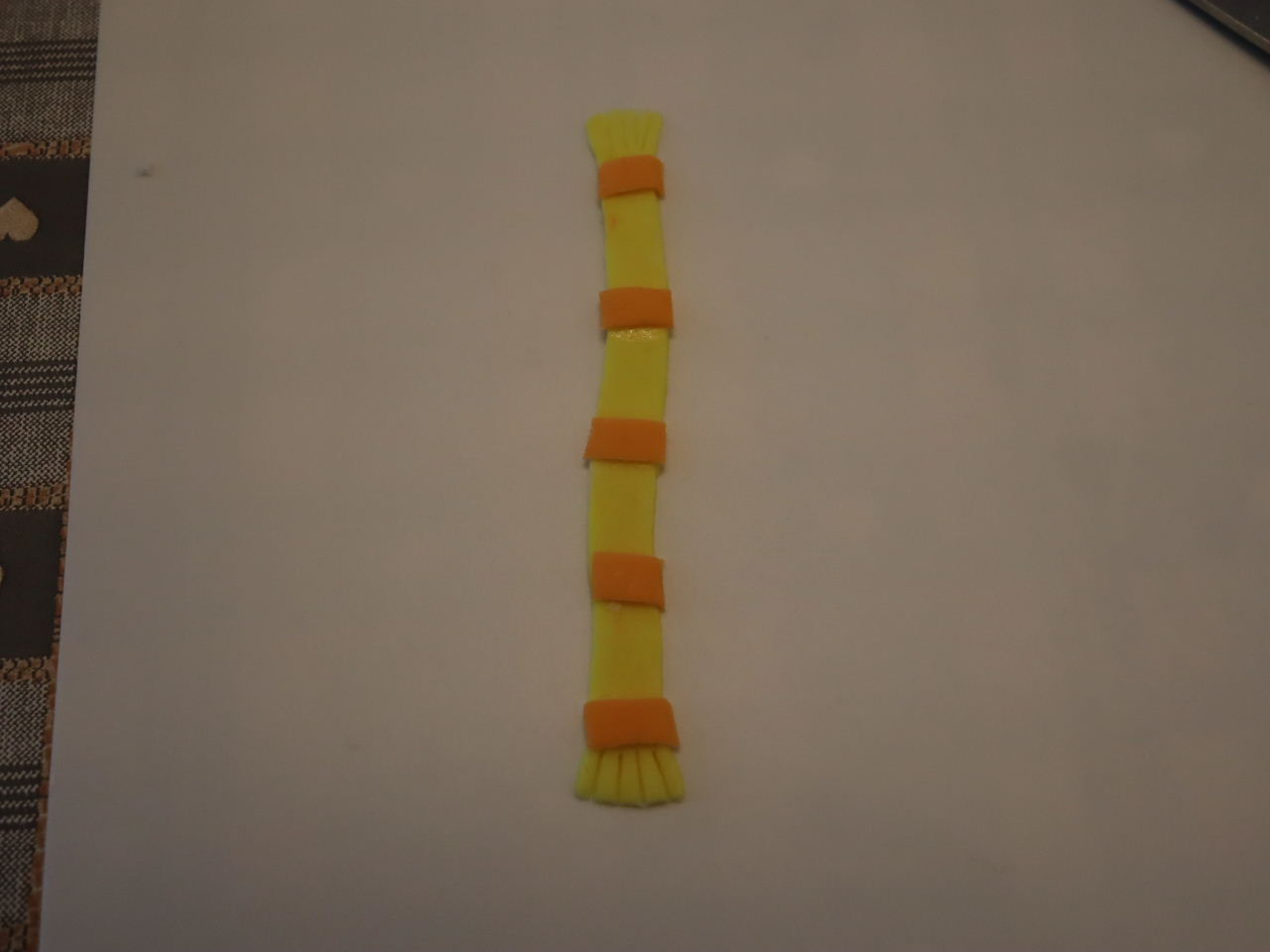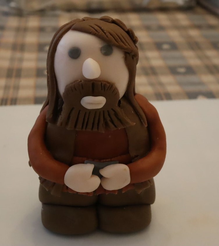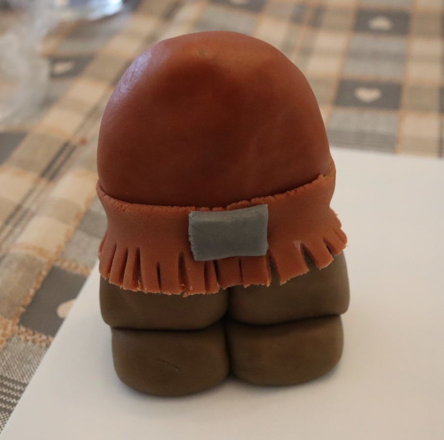 part in the figure and part in the cake to keep them secure. Hagrid, the magic wand, broomstick and the spell book when then added. Finally I made a scarf and placed that around the cake.