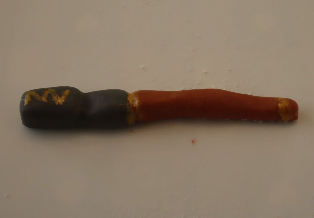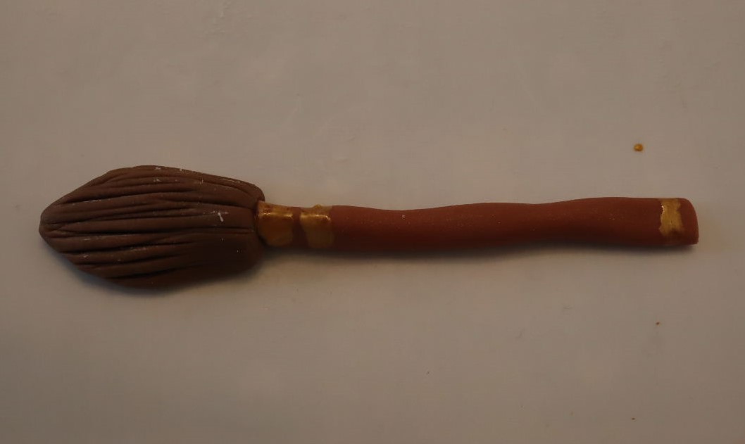 Five days before Daniels birthday I was ready to start. I got my iPad out with a picture of Harry Potter on the screen. Then I checked what colours I needed and mixed them into the fondant. I made Harry, Hermione, and Ron first, followed by Hagrid. I also made a broomstick and a magic wand. Of course no Harry Potter cake would be complete without a book of spells.