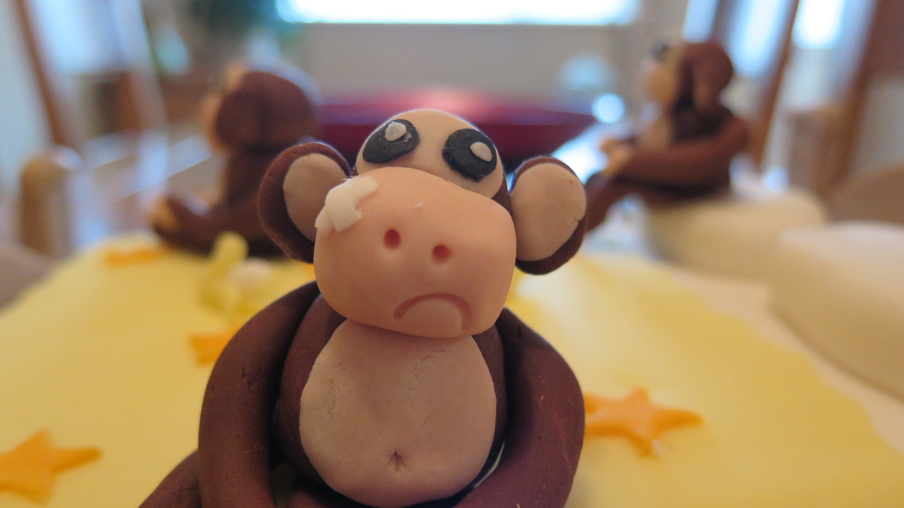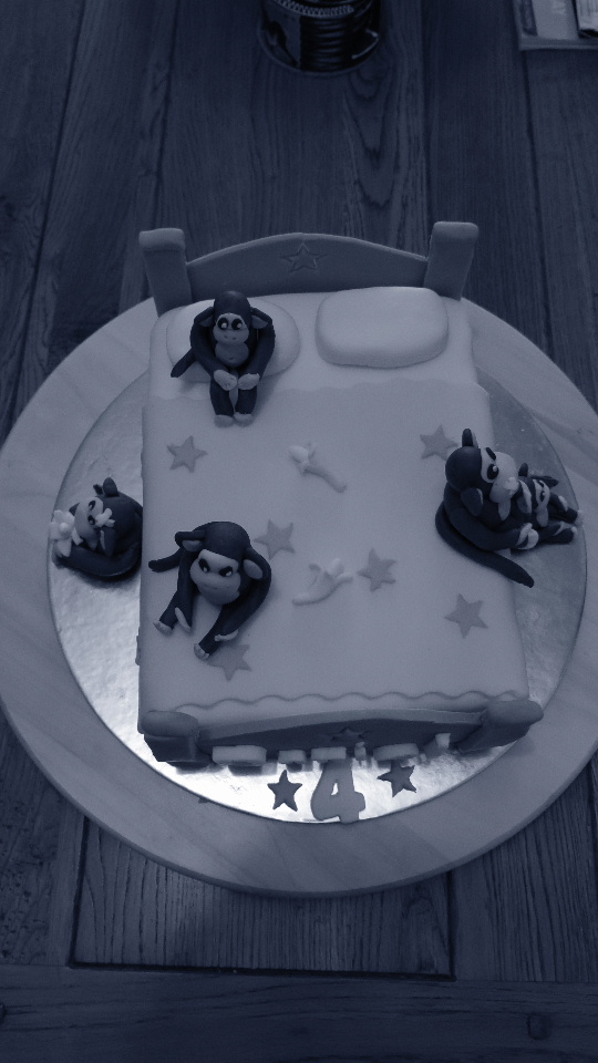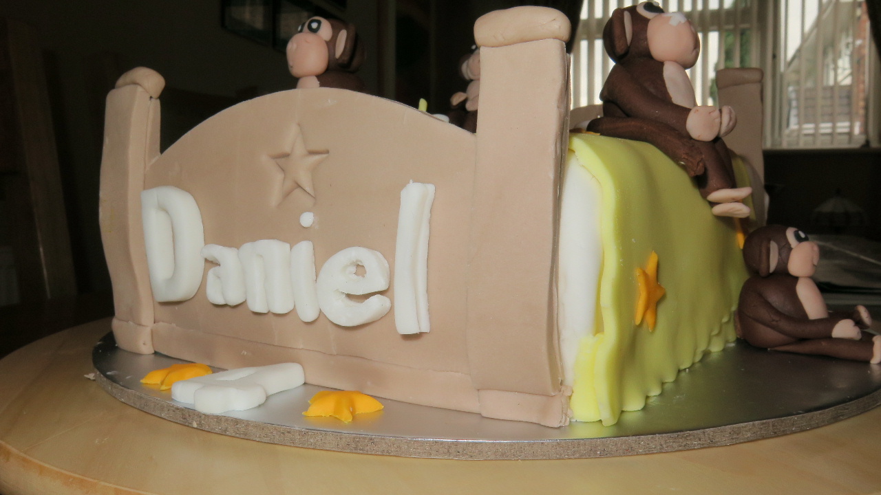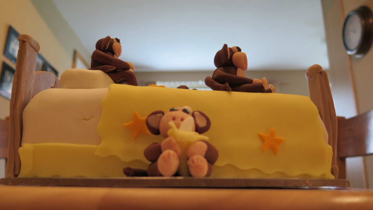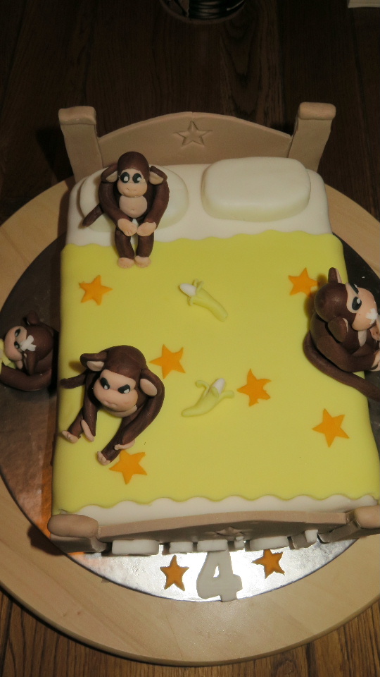 So it wasn’t really a surprise that Daniel asked for a birthday cake that featured a monkey … or in this case several monkeys. His favourite book at the time was Seven Little Monkeys Jumping on the Bed so I decided this would be the theme for the cake.
